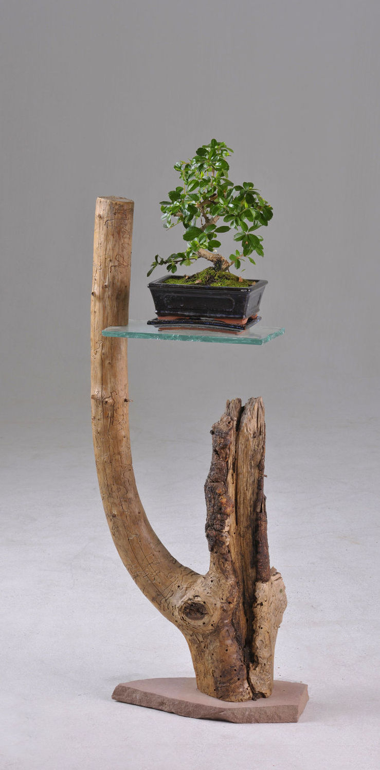 Fichtenholz geölt, Sandstein, Glas, Bonsai